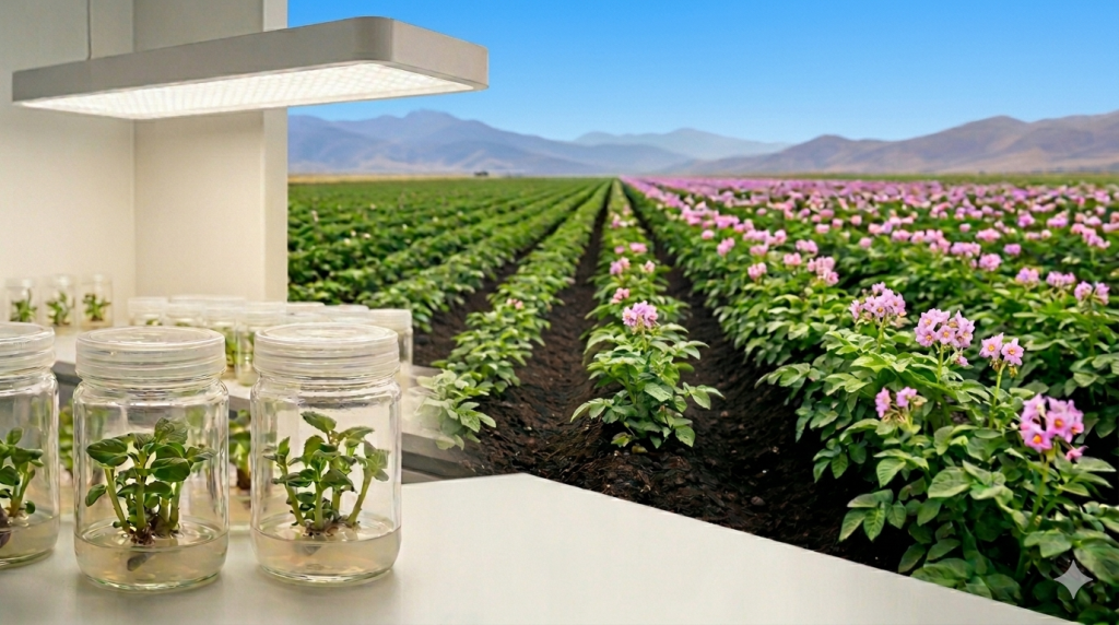 Producción de plántulas in vitro y semilla de papa con certificación. Contamos con laboratorio propio, supervisado por SENASA.